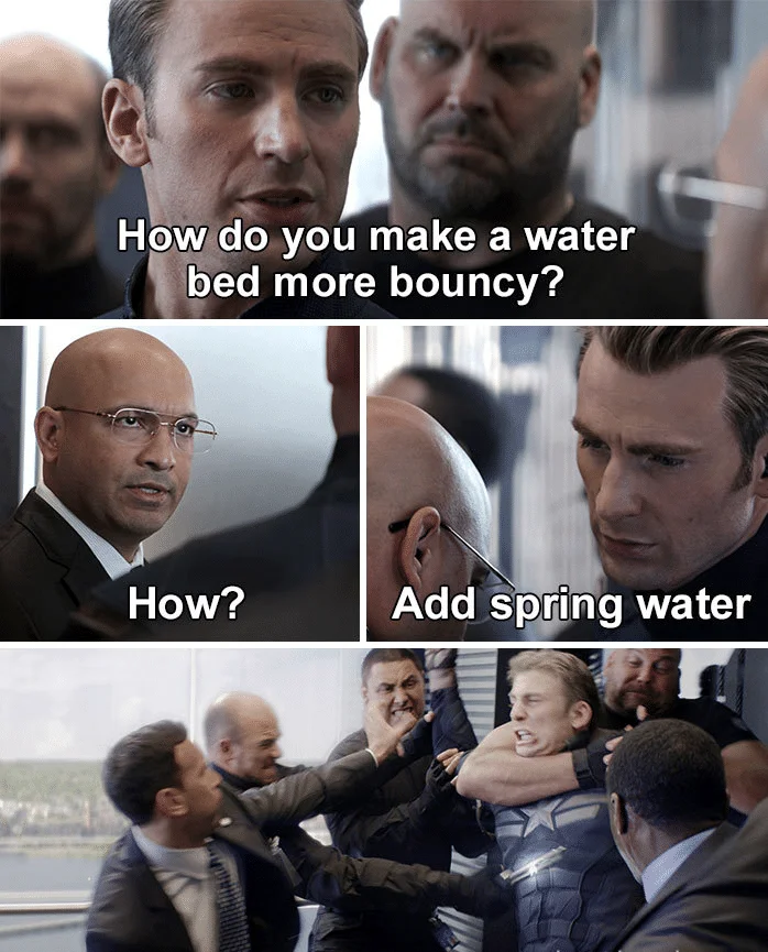 Every once in a while, a meme trend sweeps the internet and suddenly everyone is fanatically sharing it to the point of getting fed up with seeing it in every two or three scrolls. The new trend lately has been a dad joke template involving Captain America. It might not be the meme we need, but it’s certainly the meme we deserve. People have taken a series of stills from Captain America: The Winter Soldier and Avengers: Endgame and repurposed them (to hilarious effect) by combining the dramatic stills with terrible dad jokes. To be honest, there is something very funny about a joke so bad that it causes a fight to break out. That’s what you’re going to see in the jokes below. Please let us know in a comment what you liked the most. And if you have something similar, share it with us and we will have it added to the article.